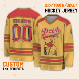 Personalize Pooh Hockey Personalised Ice Team Sports Disneyland Family Trip Vacation Birthday Gift For Fans Printed Hockey Jersey Shirt LN