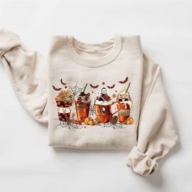 Skeleton Coffee Cups Skull Skeleton Halloween Sand Color Sweatshirt