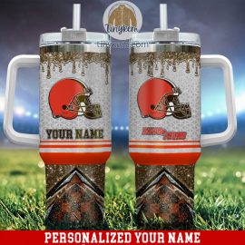 CleBrowns Glitter NFBLeage Custom Quencher 40oz Stainless Steel Tumbler With Handle, Best Gifts NVA