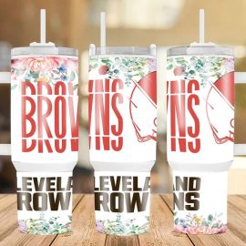 CleBrowns Floral NFBLeage Custom Quencher 40oz Stainless Steel Tumbler With Handle NVA