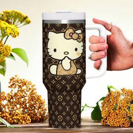 lv2 Brown Hello Kitty Custom Logo 40oz Tumbler HG Luxury Brand Summer Gifts