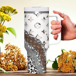 lv2 Leopard Brown White Grey Gliter Printed Pattern Custom Logo 40oz Tumbler HG Luxury Brand Summer Gifts