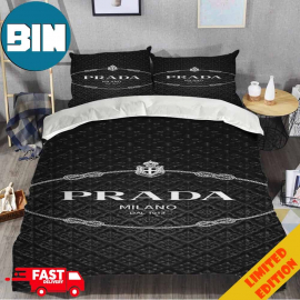 .PRDMilano Logo Roses Background Black And White Home Decor Luxury Fashion Bedding Set HG
