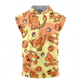 Charmander Pattern Pokemon Sleeveless Hoodie Zip up Sleeveless Hoodie Unisex Hoodie NVA