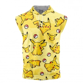 Pikachu Pattern Pokemon Sleeveless Hoodie Zip up Sleeveless Hoodie Unisex Hoodie NVA