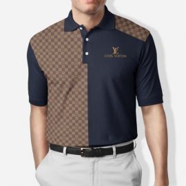 Gift For LV2 Lover Navy Brown LV2 Pattern Polo Shirt HG Gifts For Men Women Men Hot Gifts