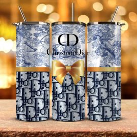 Blue DR1 Oblique Jacquard With Ribbon DR1 Luxury Gift For Her For Him 20oz or 30oz Printed Skinny Tumbler LN