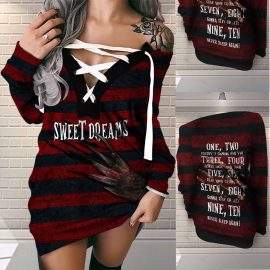 Halloween Gifts Freddy Krueger Sweet Dream With Hand Horror Movie V-neck Off Shoulder Long Sleeve Dress HG