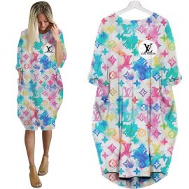 Gift For LV2 Lover LV2 Colorful Watercolor Pattern Batwing Pocket Dress HG Hot Gifts For Men Women HG
