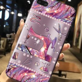 Gift For Sewer Pink Sewing Metal Pattern And Gemstone Print Sewing Phone Case HG