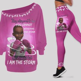 Breast Cancer Awareness Wear Pink Black Girl Warrior Off Shoulder Long Sleeve Top and Leggings Set HG