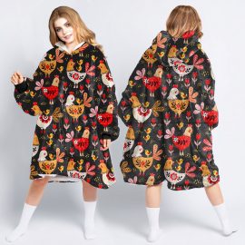 Gifts For Chicken Lovers Folk Art Chickens Wearable Blanket Snug Hoodie For Kids Or Adults