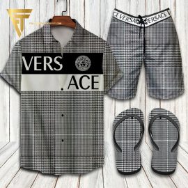 VSC Gold Monogram NNA Hawaiian Shirt Beach Shorts And Flip Flops