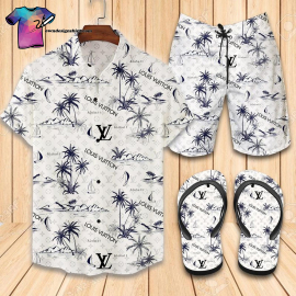 LV2 Palm Tree Full Print NNA Hawaiian Shirt Beach Shorts And Flip Flops