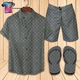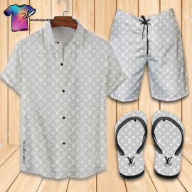 LV2 Pale Grey NNA Hawaiian Shirt Short Flip Flops