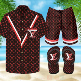 LV2 Red NNA Hawaiian Shirt Short Flip Flops