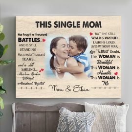 Customized Photo Single Mom Son To Mother Canvas And Poster