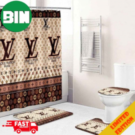 Shower curtains louis vitton brown and gold yellow logo full bathroom set Bath Rug Set and Shower Curtain s HG