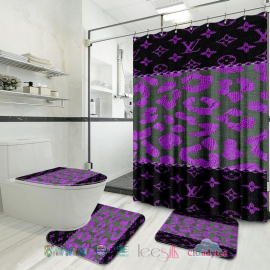 lv2 Leopard Purple Luxury Full Bath Rug Set and Shower Curtain HG