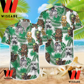 Cute Tropical Leaves Chewbacca C3PO R2D2 Star Wars Button Up Hawaiian Shirt Hawaiian Shirt LN