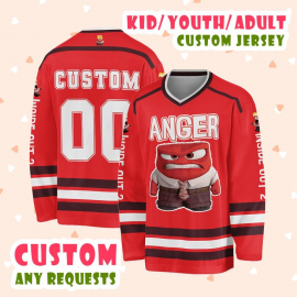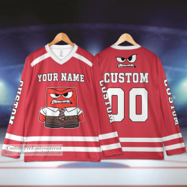 Personalized Inside Out Anger Red Personalised Ice Team Sports Disneyland Family Trip Birthday Gift Printed Hockey Jersey Shirt LN