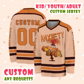 Inside Out 2 Movie Customized Anxiety Hockey Classic Beige Hockey Disney Custom Shirt Hockey Team Ice Hockey Lover Gifts Printed Hockey Jersey Shirt LN