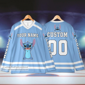 Personalize Stitch Custom Ice Team Sports Disneyland Family Trip Birthday Gift For Fans Printed Hockey Jersey Shirt LN