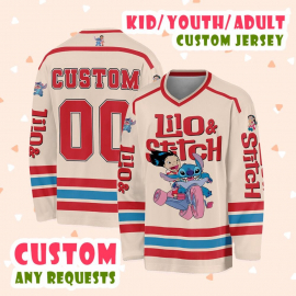 Customized Disney Lilo and Stitch Hockey Classic Hockey Disney Custom Shirt Hockey Team Hockey Lovers Gifts Printed Hockey Jersey Shirt LN