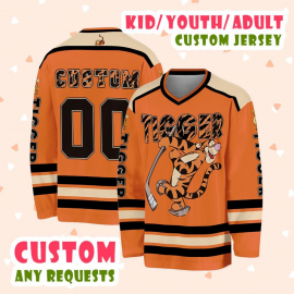 Customized Disney Tigger The Pooh Movie Hockey Classic Orange Hockey Disney Custom Shirt Hockey Team Hockey Lovers Gifts Printed Hockey Jersey Shirt LN