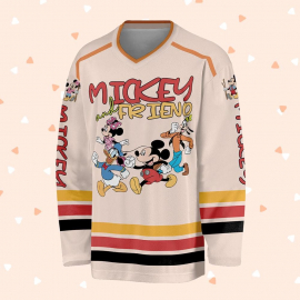 Customized Disney Mickey Mouse And Friends Hockey Light Orange Hockey Custom Shirt Hockey Team Hockey Lovers Gifts Printed Hockey Jersey Shirt LN
