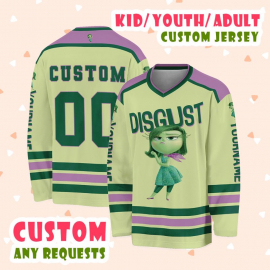 Inside Out 2 Custom Disgust Character Hockey Purple Light Green Hockey Disney Custom Shirt Hockey Team Disney Lover Gift Printed Hockey Jersey Shirt LN