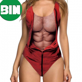 Red Zipper Clothes Muscle Ugly One Piece Funny Swimsuit HG