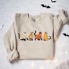 Ghost Cats Halloween Sweatshirt Halloween Sweatshirt For Cat Lovers Q0710