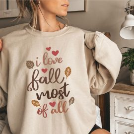 I Love Fall Most Of All Sweatshirt Cute Pumpkin Thanksgiving Sweatshirt G0710