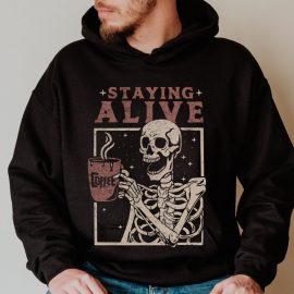 Staying Alive Coffee Halloween Jersey Trendy Funny Skeleton Jersey B0410