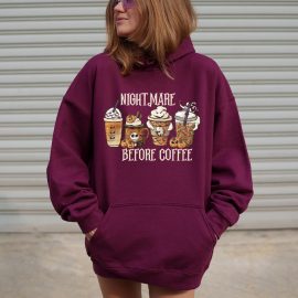 Nightmare Before Coffee Jersey Coffee Lover Gift Halloween Gift Pumpkin Maroon Jersey