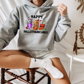 Happy Hallothanksmas Sweatshirt Happy Hallothanksmas Apparel Trendy Black Sweatshirt I