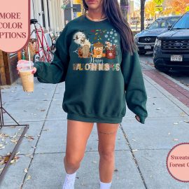 Happy Hallothanksmas Sweatshirt Thanksgiving Halloween Party Xmas Green Sweatshirt I