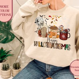 Happy Hallothanksmas Sweatshirt Thanksgiving Halloween Party Xmas Sand Color Sweatshirt I