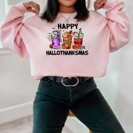 Blu3y Unique Sand Color Trick Or Treat Design Sweatshirt For Families