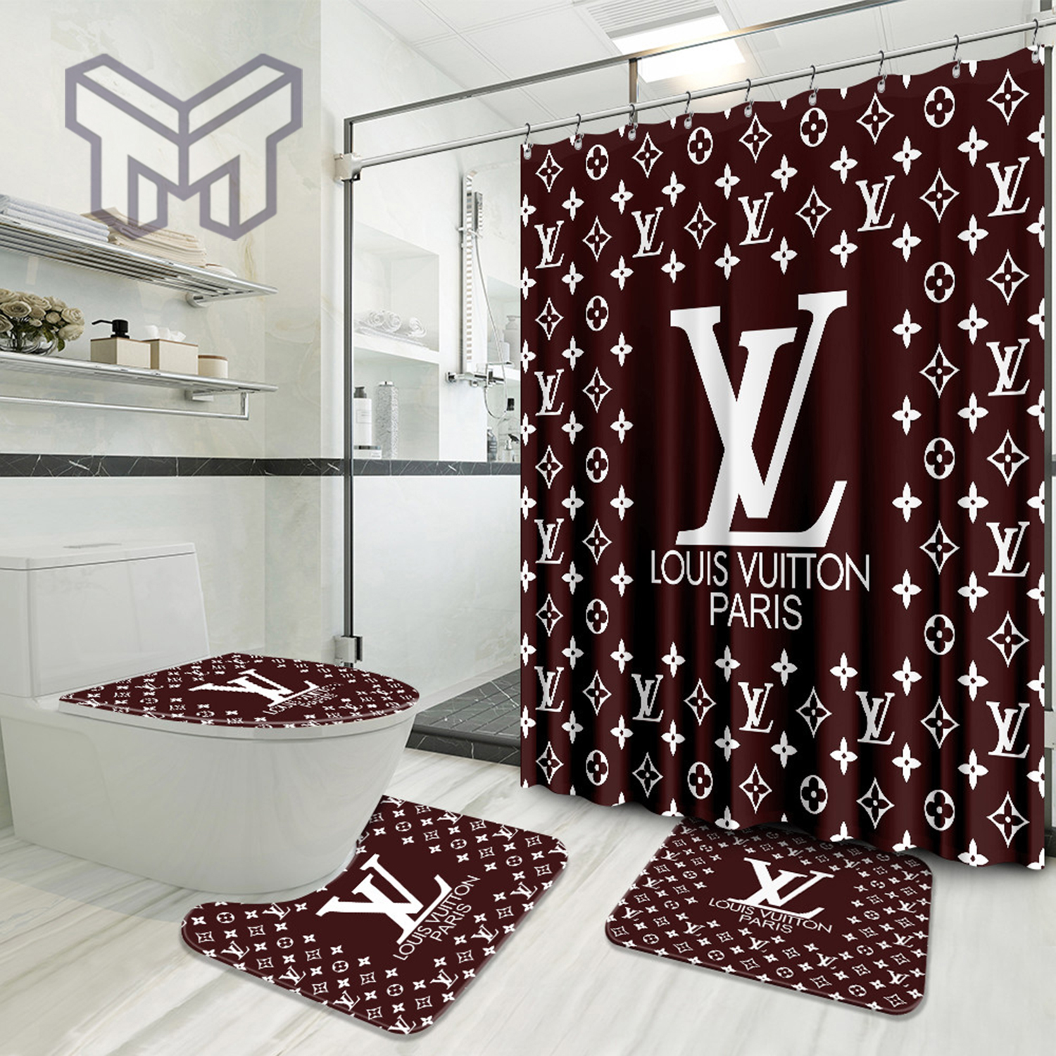 LV2 Dark Red Luxury Brand Logo Premium Bathroom Set NNA Home Decor Shower Curtain And Rug Toilet Seat Lid Covers Bathroom Set NNA