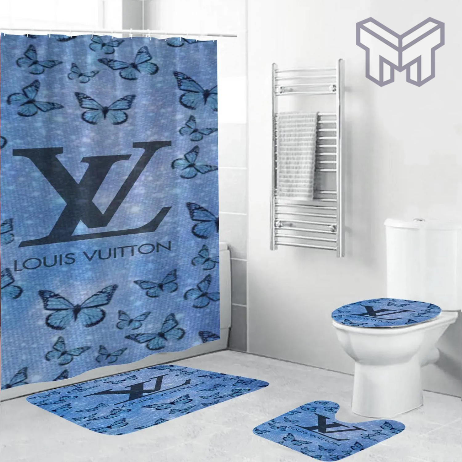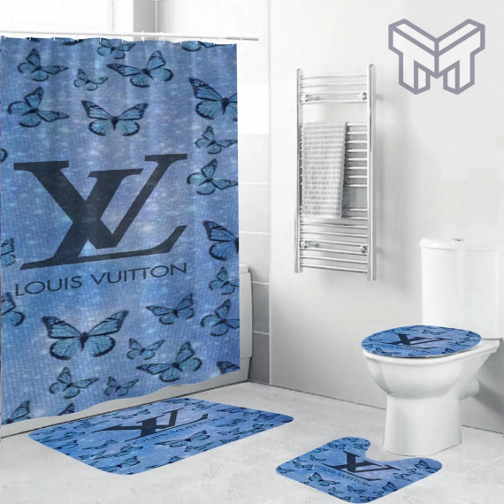 LV2 Fashion Logo Limited Luxury Brand Bathroom Set NNA Home Decor 05 Shower Curtain And Rug Toilet Seat Lid Covers Bathroom Set NNA
