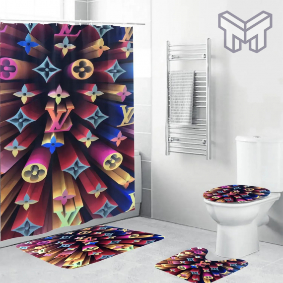 LV2 Fashion Logo Limited Luxury Brand Bathroom Set NNA Home Decor 07 Shower Curtain And Rug Toilet Seat Lid Covers Bathroom Set NNA
