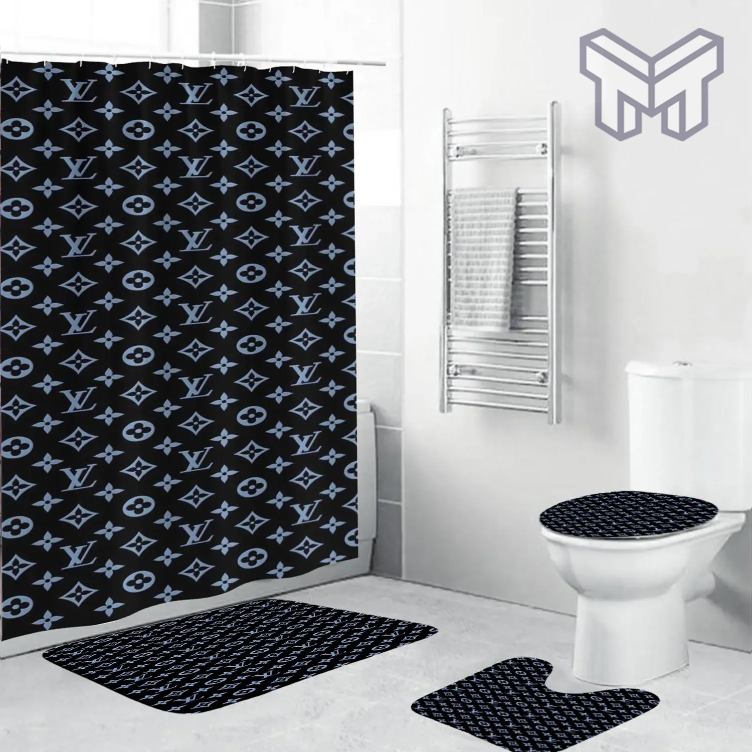 LV2 Fashion Logo Limited Luxury Brand Bathroom Set NNA Home Decor 08 Shower Curtain And Rug Toilet Seat Lid Covers Bathroom Set NNA