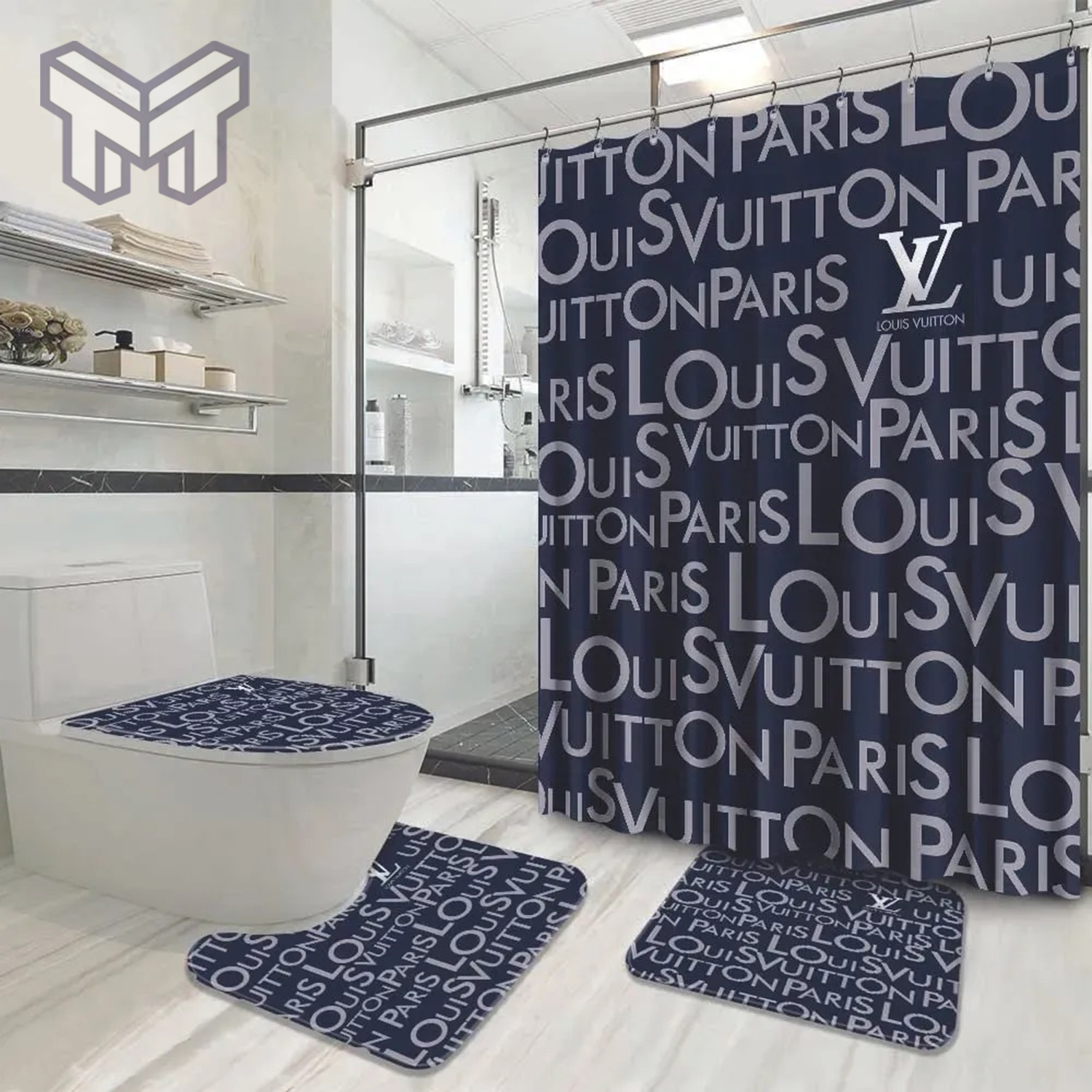LV2 LV Bathroom Set Luxury Shower Curtain Bath Rug Mat Home Decor HT