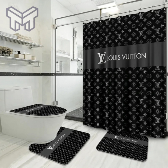 LV2 Fashion Logo Limited Luxury Brand Bathroom Set NNA Home Decor 26 Shower Curtain And Rug Toilet Seat Lid Covers Bathroom Set NNA