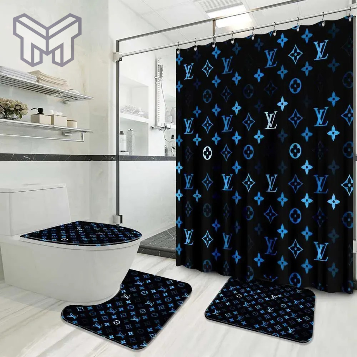 lv2 Black Fashion Luxury Brand Premium Bathroom Set Shower Curtain HG And Bath Mat