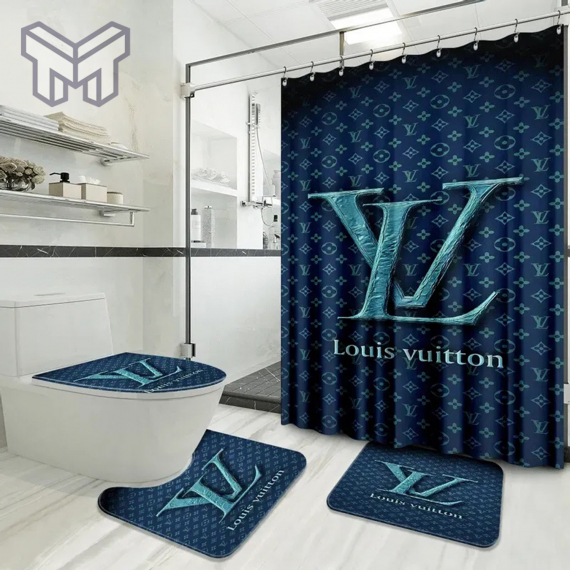LV2 Fashion Logo Limited Luxury Brand Bathroom Set NNA Home Decor 46 Shower Curtain And Rug Toilet Seat Lid Covers Bathroom Set NNA