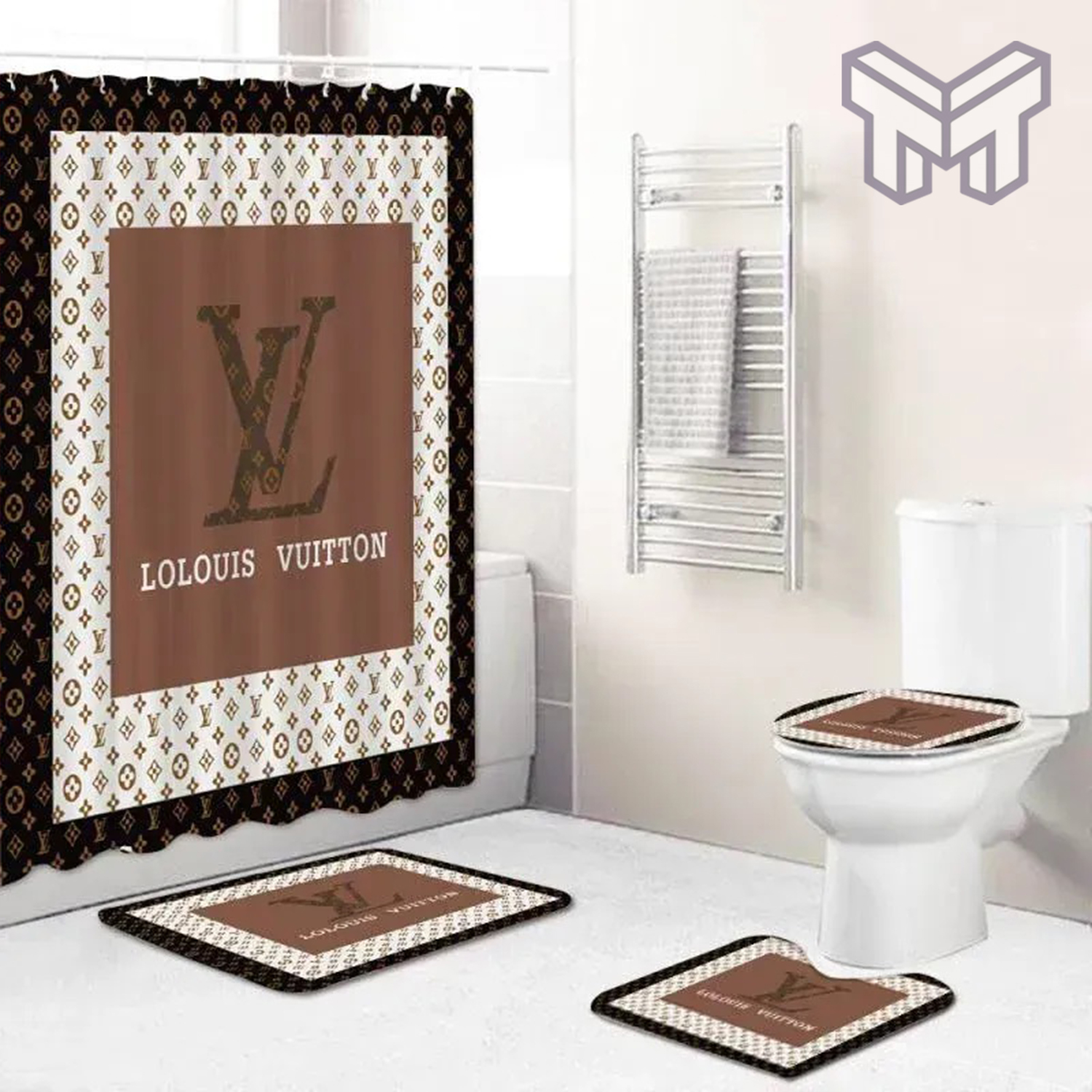 LV2 LV Bathroom Set Luxury Shower Curtain Bath Rug Mat Home Decor HT