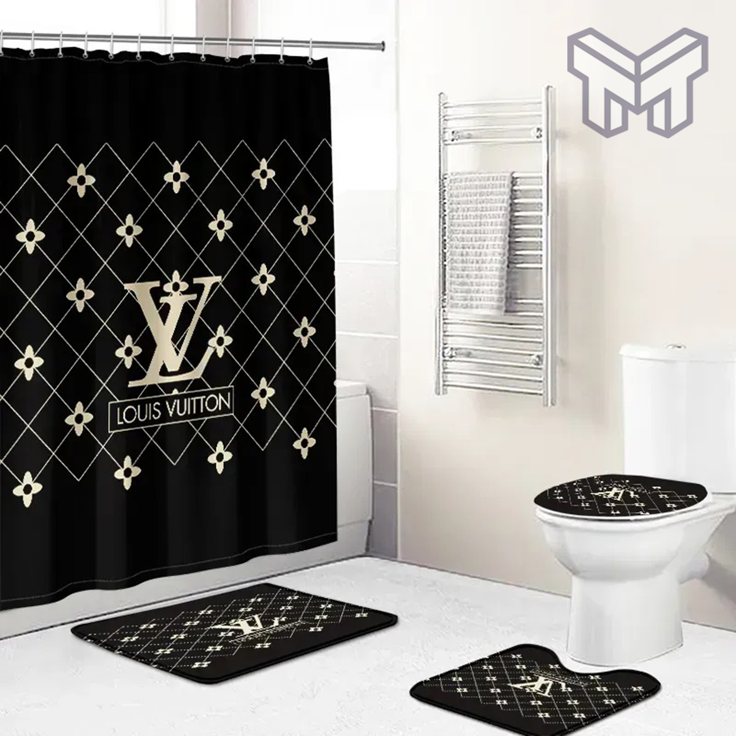 LV2 Fashion Logo Limited Luxury Brand Bathroom Set NNA Home Decor 62 Shower Curtain And Rug Toilet Seat Lid Covers Bathroom Set NNA